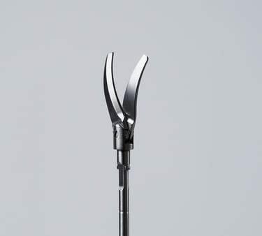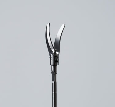 As tesouras são utilizadas em cirurgias minimamente invasivas para cortar tecidos e dissecar estruturas anatômicas. Possuem designs variados (curvas, retas, com ponta romba ou afiada) para se adaptar a diferentes procedimentos.